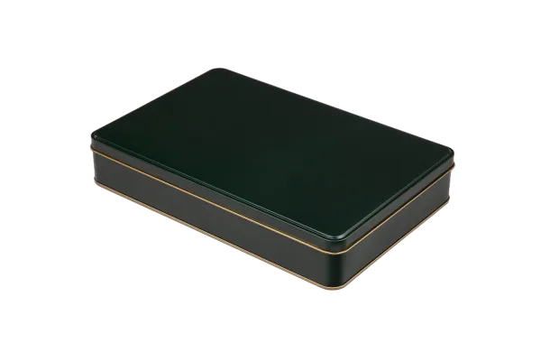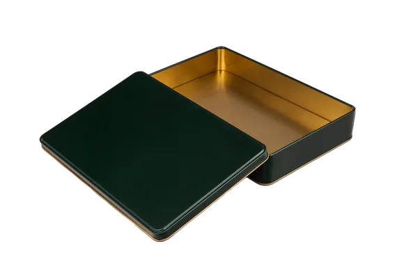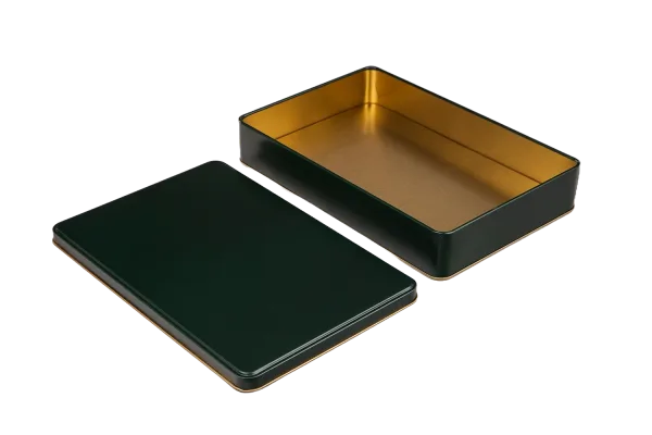 265x175x45 mm ölçülerindeki bu penceresiz teneke kutu; geniş iç hacmi, gold laklı iç kaplaması ve çok renkli dış yüzey seçenekleriyle (Beyaz, Kırmızı, Mat Siyah, Gold, Yeşil) hem şık hem de fonksiyonel bir ambalaj çözümüdür. Baskılı veya baskısız seçeneklerle markanıza özel üretim yapılabilir.