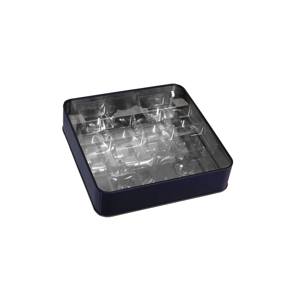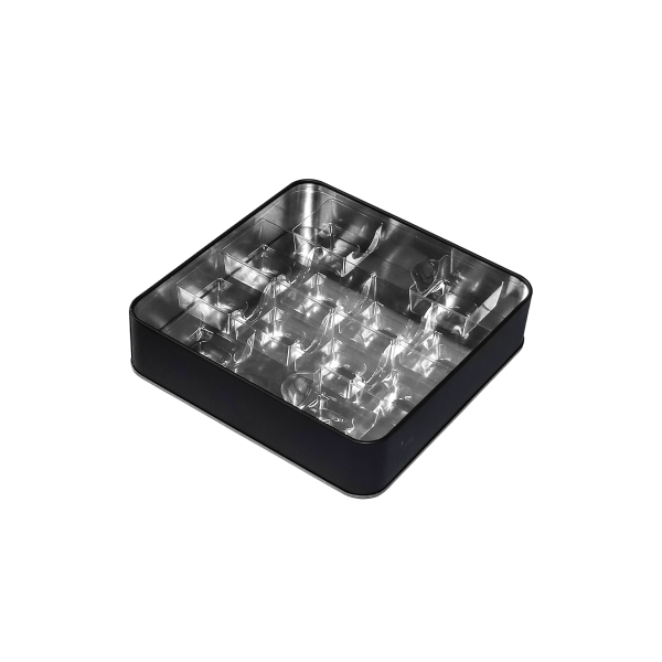19 x 19 cm ebatlarında 12 bölmeli madlen seperatör (şeffaf), 500 gr çikolata kutuları için uygun olup şık bir görünüm sağlamaktadır.