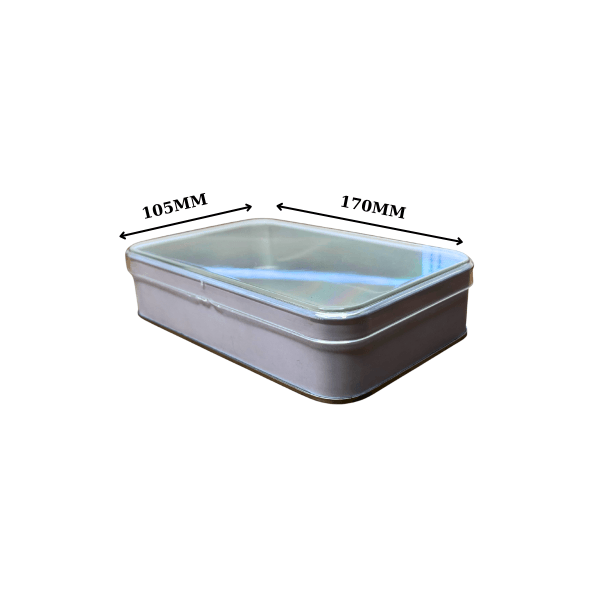 170×105 Şeffaf Kristal Kapaklı Teneke Kutu | Silver