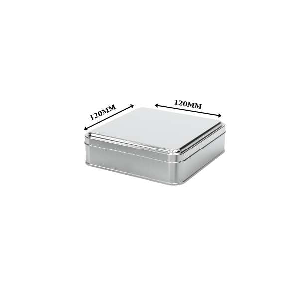 120x120x40 mm ölçülerindeki bu kare teneke kutu; şık tasarımı, sağlam yapısı ve gıdaya uygun iç kaplaması ile farklı sektörlerde çok yönlü kullanım imkânı sunar. Beyaz dış yüzeyiyle sade ve zarif bir görünüm sunarken, gümüş laklı iç yüzeyi ürünlerinizin kalitesini yansıtır.