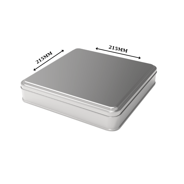 215x215x40 mm ölçülerindeki bu kare teneke kutu; geniş hacmi, zarif beyaz dış yüzeyi ve gümüş laklı iç kaplamasıyla hem dayanıklılık hem de estetik sunar. Baskılı ve baskısız seçenekleriyle, markanızın ihtiyaçlarına özel olarak üretilebilir.